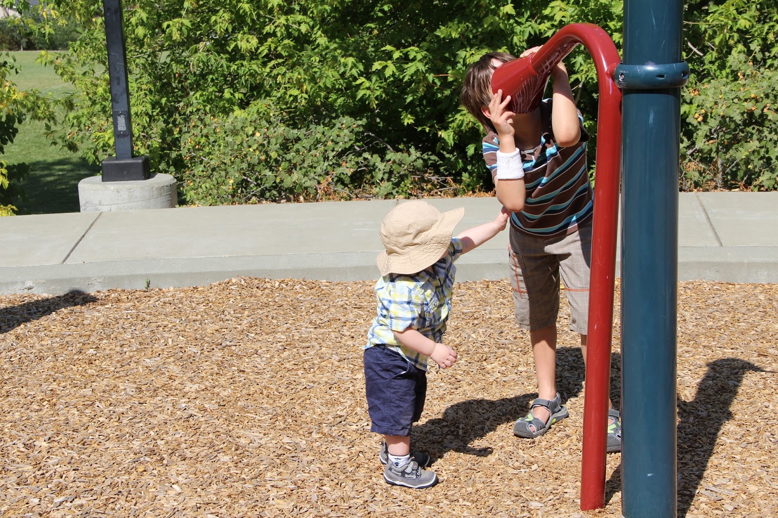 We went to Pleasanton to celebrate Lucas' fourth birthday. Scott loved the playground.