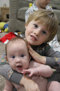 Jane learned how to shriek this month, suck her thump, pull hair, grab her feet, and roll.