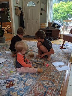 Scott's balloon powered car. I love Jonah's sympathy cheek puffing in the background.